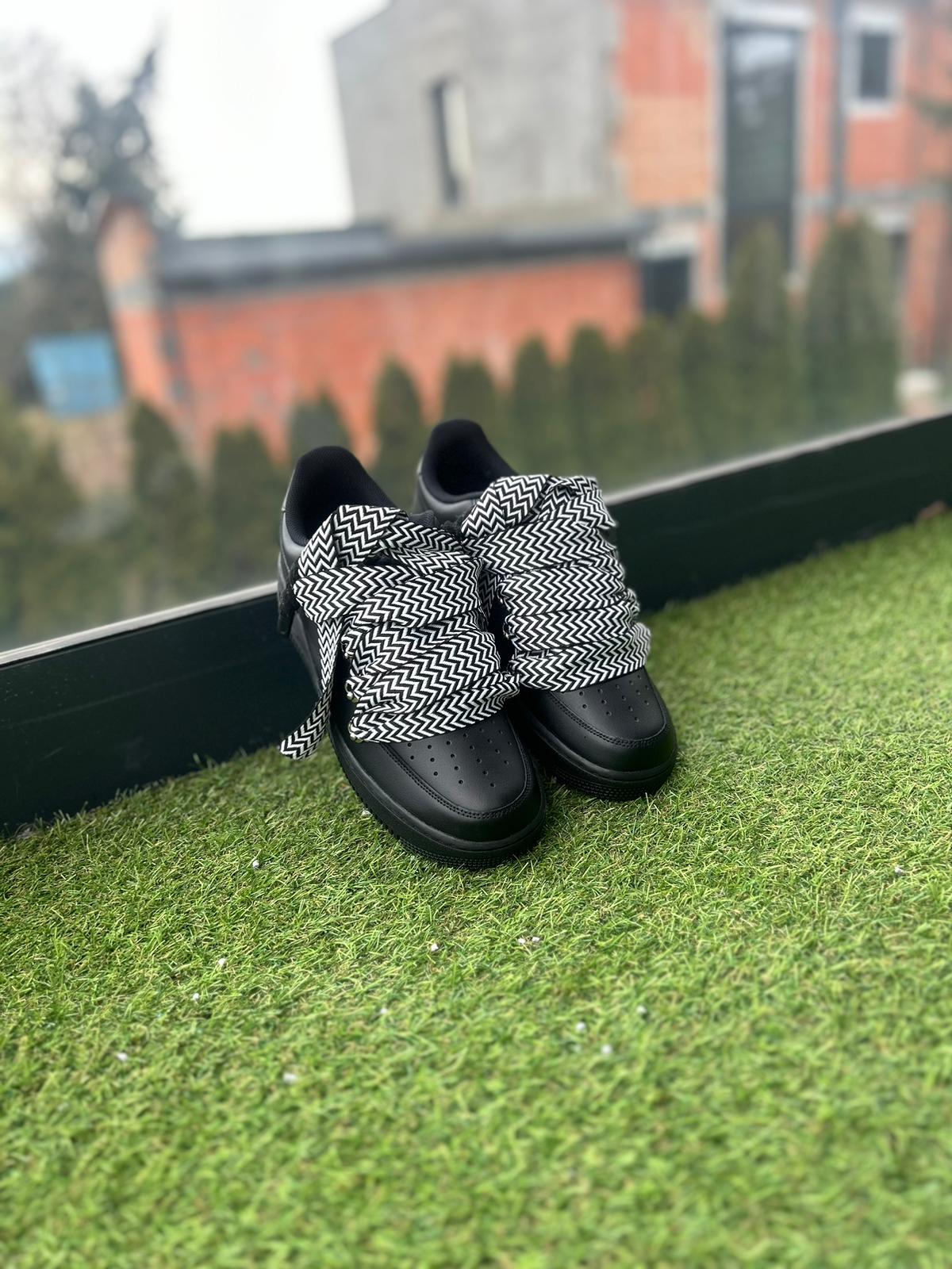 Nike Air Force 1 Black / WHITE LANVIN ROPE LACES CUSTOM